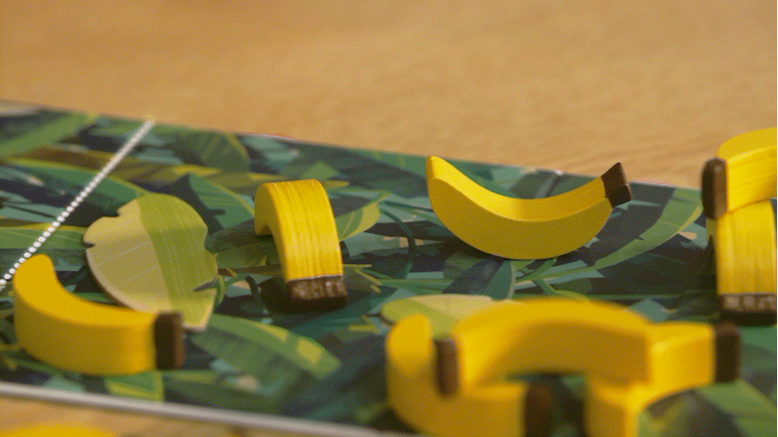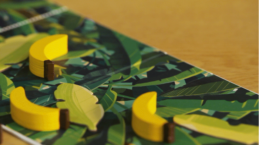 바나나 나무에 바나나가 열립니다. 바나나 스틱을 보드 위에 쌓으세요. 다른 스틱 두 개 위에 쌓는 데 성공했다면 스틱을 한 번 더 놓을 수 있습니다. 자신의 스틱을 먼저 모두 쌓으면 승리합니다.