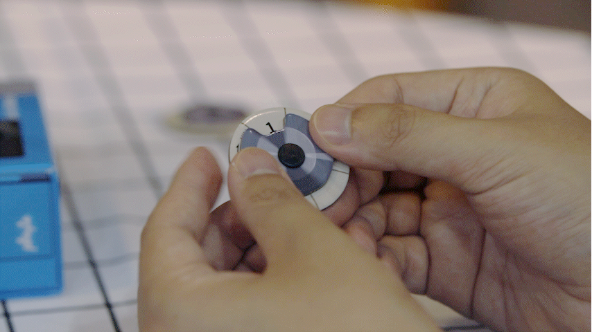 3. 모든 플레이어는 음악을 잘 듣고, 현재 오픈된 카드의 단어 중 가장 어울린다고 생각하는 번호로 숫자를 맞춥니다. 이 때, 몇 번으로 다이얼을 맞췄는지 다른 사람에게 보여서는 안됩니다. 또한 플레이어들은 서로 말을 하거나 힌트를 주는 행동을 할 수 없습니다.