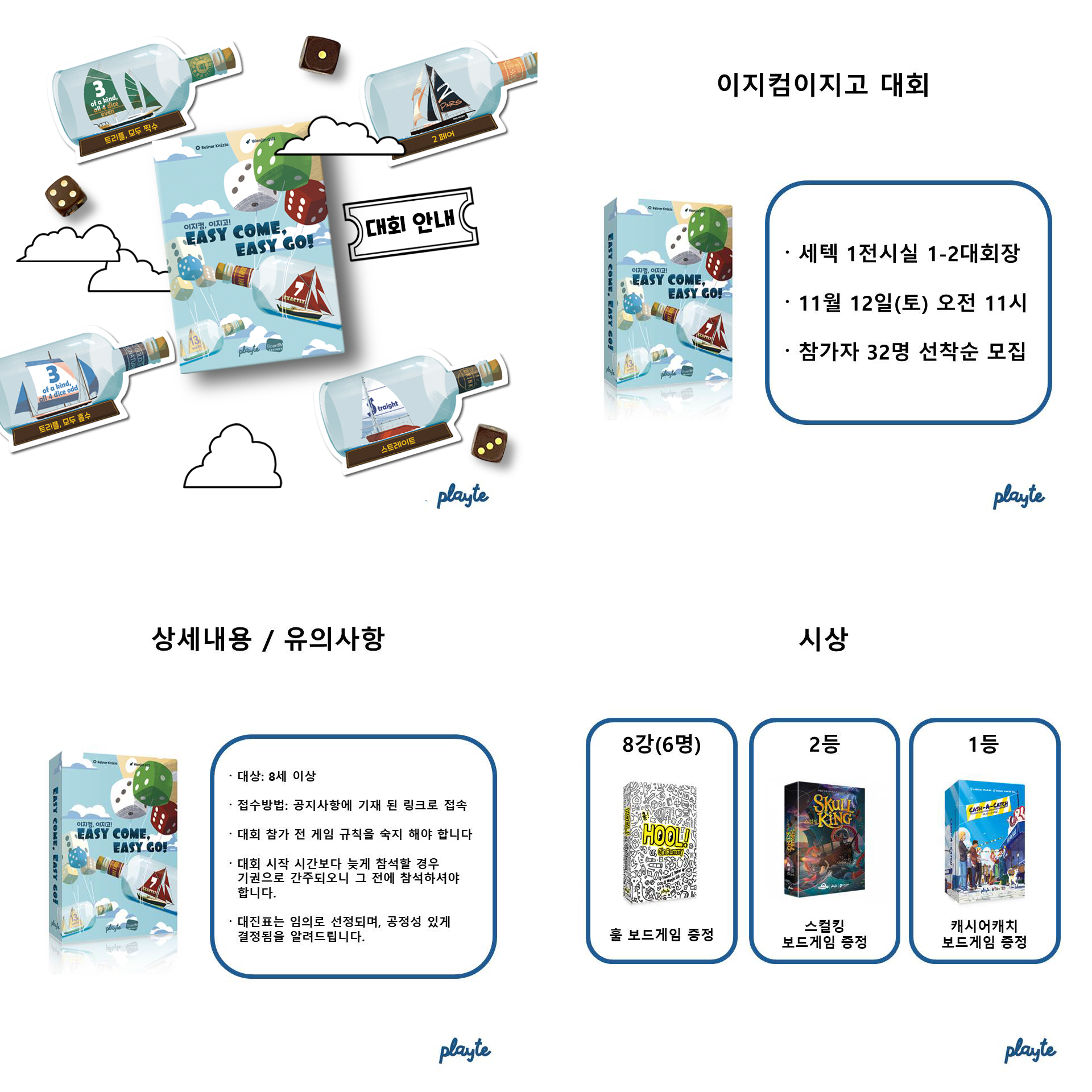 이번 보드게임 페스타의 토요일 오전, 플레이트의 <이지컴이지고> 대회에 참여해 보세요.